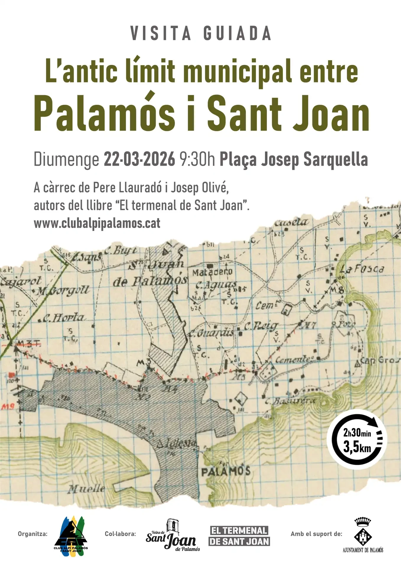 Aprofitant la recent restitució efectuada per l'Àrea de Patrimoni de l'Ajuntament de Palamós en col·laboració amb el Club Alpí Palamós i Sant Joan, el proper diumenge 22 de març de 2026 es durà a terme una visita guiada gratuïta de l'antiga línia de separació entre els municipis de Palamós i Sant Joan de Palamós. Anirà a càrrec de Pere Llauradó i Josep Olivé, autors del llibre "El termenal de Sant Joan" editat pel Club Alpí Palamós i Sant Joan l'any 2023.